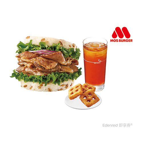 摩斯漢堡-C143超級大麥薑燒珍珠堡/摩斯吉士漢堡/蜜汁烤雞起司堡 漢堡三選一+冰紅茶(L) 即享券